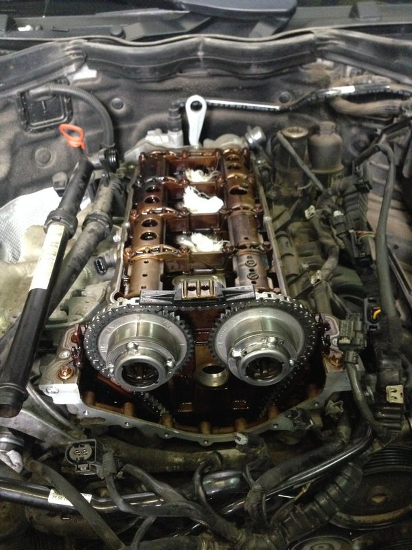 Производится замена цепи,механизмов регулировки положения впускного и выпускного распредвалов. Также подлежит обязательной замене натяжитель цепи ГРМ, прокладки, антифриз- по необходимости.
